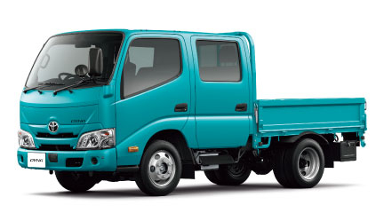 写真はダブルキャブ・ワイドキャブ・ロングデッキ・フルジャストロー・2.0トン積・ディーゼル車。ボディカラーはターコイズ〈766〉。“Sパッケージ”装着車。 車型番号105