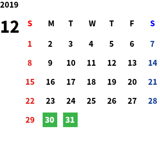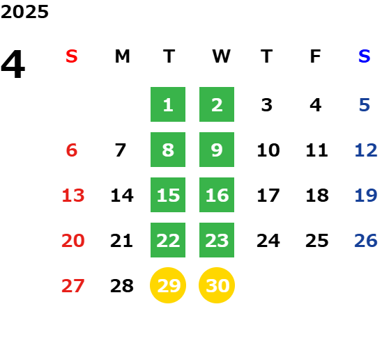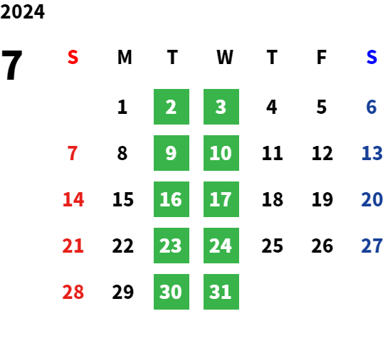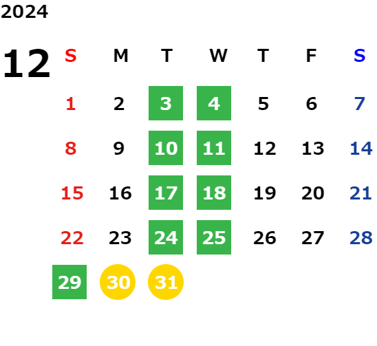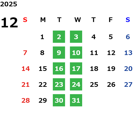 営業日カレンダー